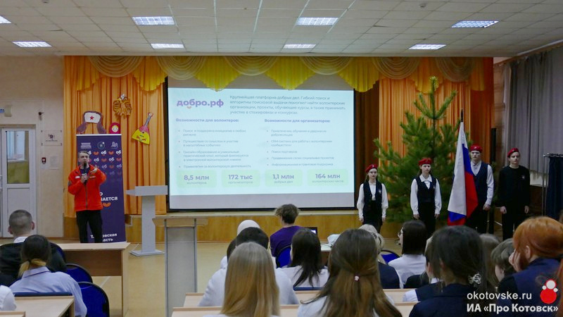 В школе № 3 с углубленным изучением отдельных предметов прошло знаковое мероприятие в рамках развития добровольческого движения — лекция, посвящённая основам волонтёрской деятельности и возможностям всероссийской платформы «Добро.РФ». Мероприятие провёл Артём Коноводов, руководитель «Добро. Центра» города Котовска.