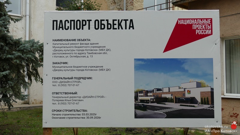 Первый этап ремонта фасада Дворца культуры завершится в ноябре 2025 года. После этого приступят ко второму. Всего на два этапа ремонта фасада учреждения культуры города планируют потратить более 68 миллионов рублей.