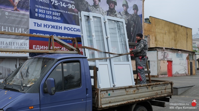 В ходе первого этапа подрядчик уже выполнил работы по ремонту металлической кровли, укладке тротуарной плитки, замене окон и витражей в помещении спортзала ДЮСШ №2 и основного здания ДК, а теперь рабочие приступили к замене дверных блоков в здании. Также уже начался завоз стройматериалов для следующего этапа работ - на территорию Дворца культуры уже доставлены материалы для облицовки будущего обновленного фасада здания.